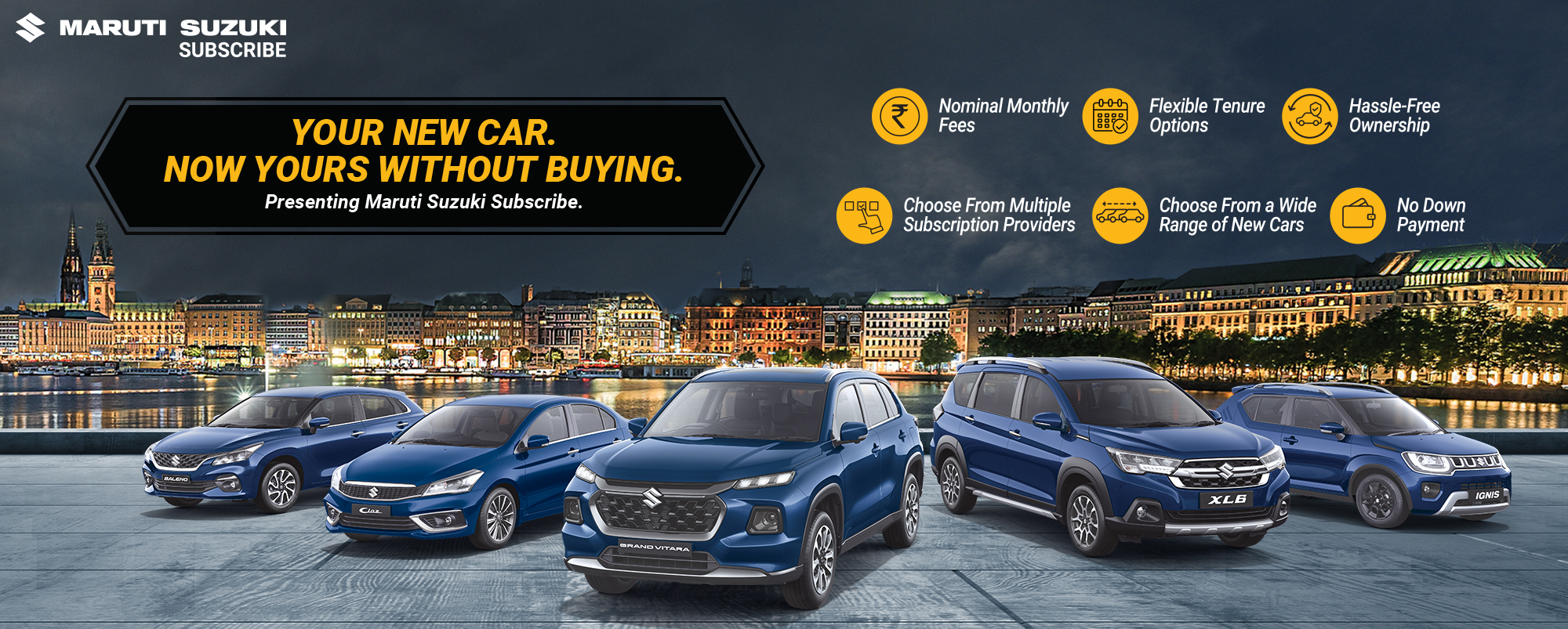 Maruti Suzuki Subscribe enables all customers to enjoy driving their preferred Maruti Suzuki cars without having to deal with all the financial responsibilities that come with owning a car.All you need to do is opt for a monthly subscription plan at a fixed monthly fee, which includes the routine maintenance and insurance costs, and choose a flexible tenure. At Banavasi Road in, Banavasi Road, Sirsi, all Hatchback, Sedan, SUV, the MUV models line-up includes Baleno, Invicto, EVitara, Jimny, Ciaz, Ignis, Fronx, Grand Vitara, XL6. Here, you will enjoy Maruti Suzuki Subscribe benefits such as: